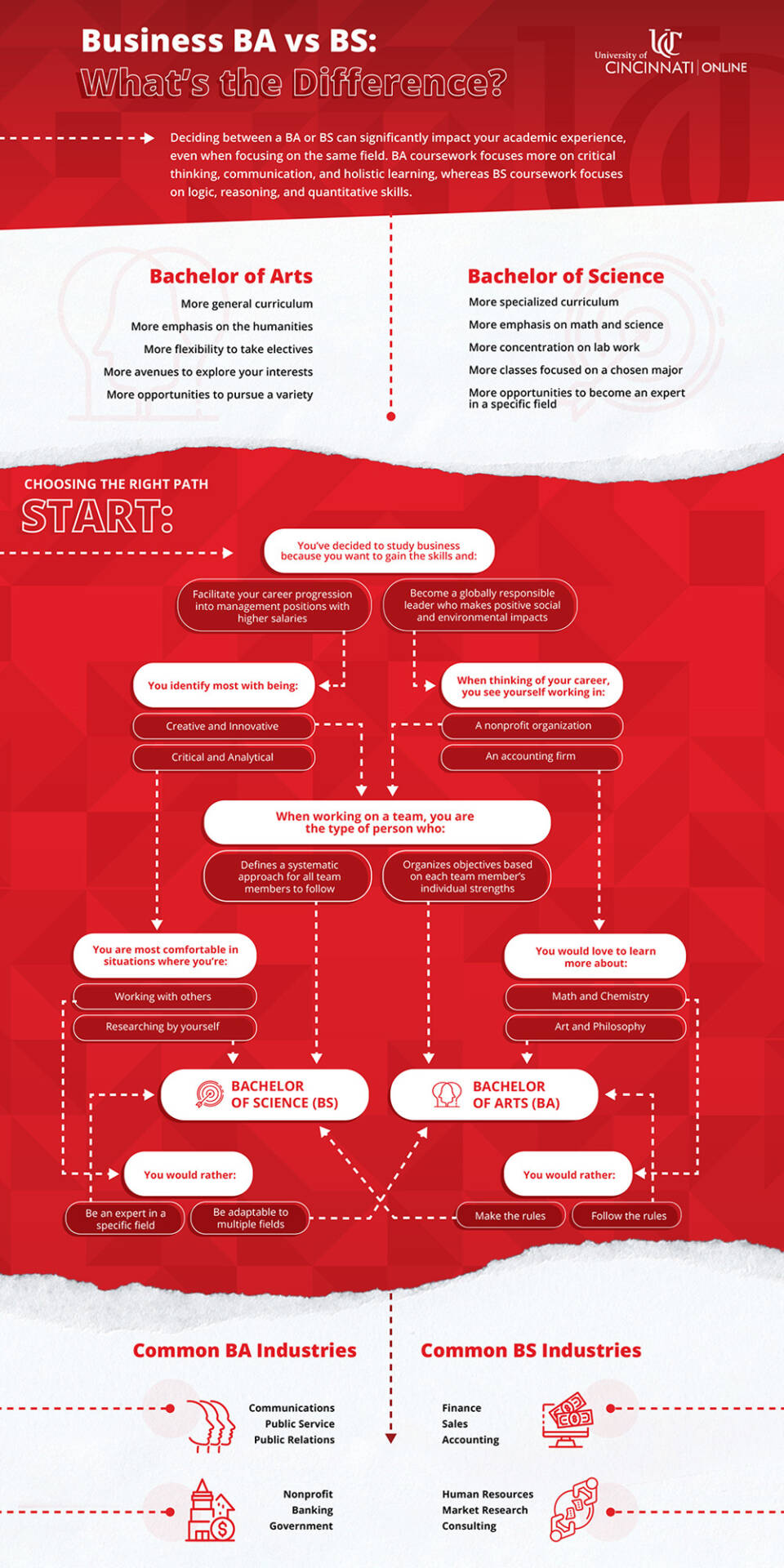 Those pursuing the BA degree are typically looking to not only be business-savvy, but people-savvy as well, and they may be strong writers and communicators looking for variety in the job duties.