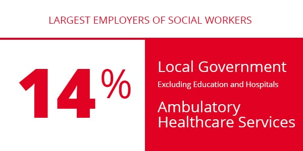 - In this sector, social workers address healthcare, behavioral health, criminal justice, social services, and child welfare issues. Professionals in this industry earn an average annual salary of $61,190.