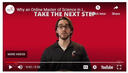 The Lindner College of Business designed UC's top 15-ranked MSIS program for working professionals who juggle multiple commitments. The asynchronous courses and fully online format are flexible and customizable. You access study materials and course lectures from our top-tier faculty any time of day. At UC, you’re never alone in your MSIS studies — unless you want to be. You interact regularly with our supportive instructors and staff, including a Student Success Coordinator. (They’re a key point of contact throughout your master’s program studies.) Plus, our program provides you with endless networking opportunities. You connect with like-minded students across the nation via discussion forums and collaborative group projects. You build a network that benefits you while you’re in UC’s program and after you graduate.
