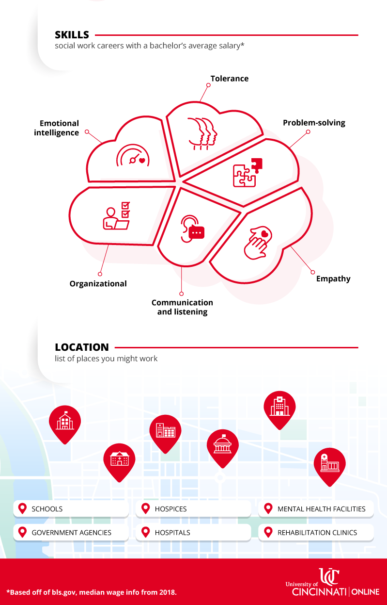Licensed social workers are altruism-driven, looking to work with the general population to help them solve and cope with a range of issues and conditions they encounter in their everyday lives. The work itself runs the gamut, from helping people struggling with physical and mental illnesses to addiction, homelessness, and poverty, for example. Although it is possible to become a social worker with an associate's degree, you'll need to earn your bachelor's degree first if you want to move on to earn your master's degree. With a master's degree in social work, you'll be able to earn more money and enter the field of social work at the management level. Careers in social work with a bachelor's degree include the fields of child and family, school, healthcare, and mental health and substance abuse. In choosing to earn your Bachelor of Social Work degree at UC Online, you're setting yourself up for one of the top jobs in the country. You can work at the federal, state, or local level and in diverse populations in either small towns or big cities.