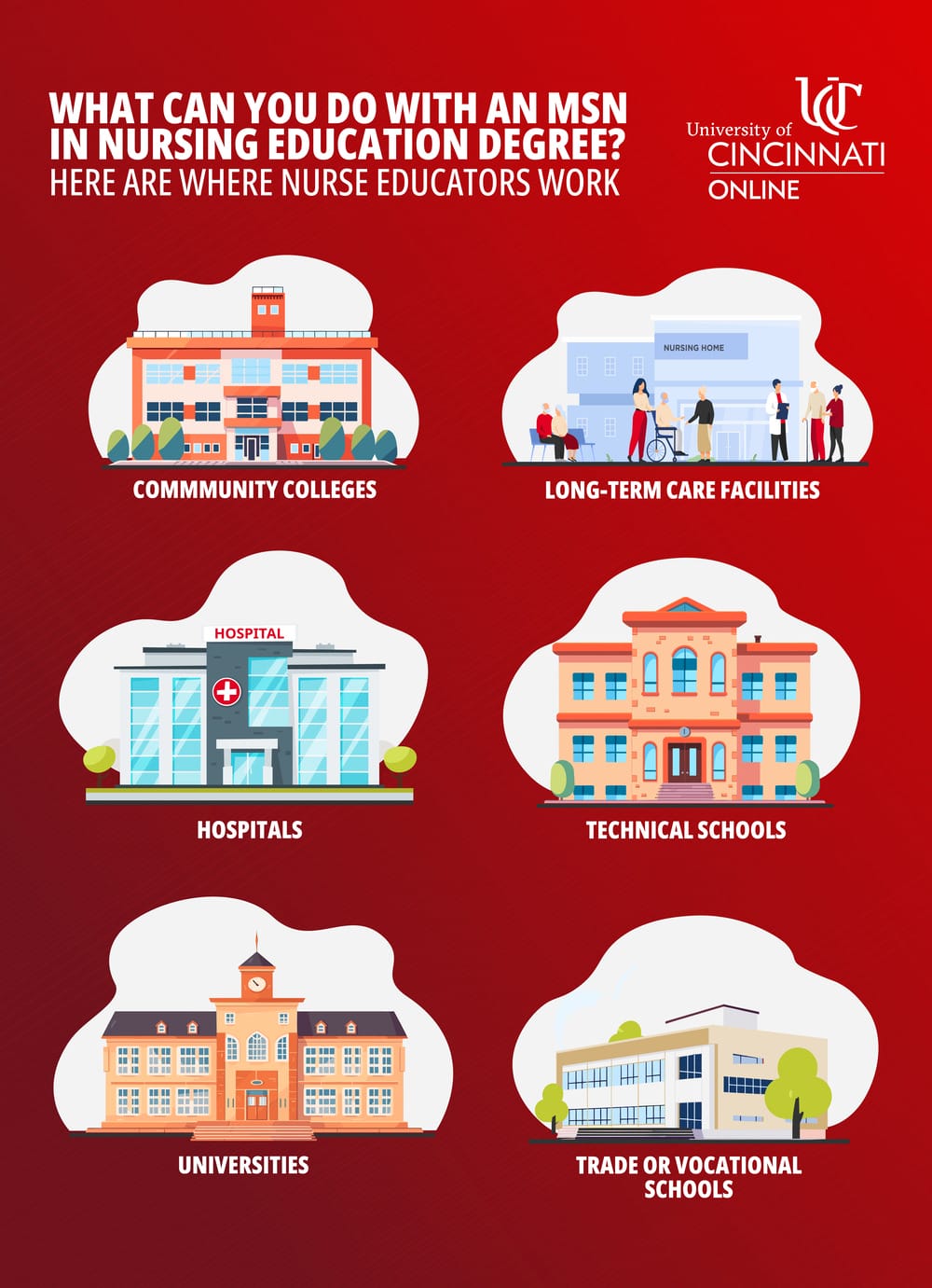 Nurses are the backbone of the healthcare system. This is why it is crucial to have skilled nurse educators who can enhance the nursing workforce, guide aspiring nurses, and implement evidence-based practice. UC offers a nationally recognized MSN in Nursing Education, which is delivered in a fully online, flexible format to cater to the needs of busy working nurses. Graduates of this program are well-equipped to design nursing curricula, employ effective evaluation strategies, evaluate program outcomes, integrate new technology into teaching, and implement online simulations. By joining the MSN in Nursing Education program offered online through the University of Cincinnati, you’ll shape the future of nursing and become a leader in the healthcare industry. Browse our online program or connect with a UC Online advisor today if you're interested in becoming a nurse educator.