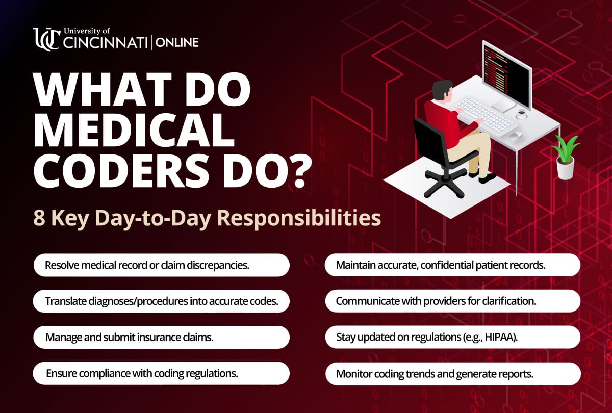The day-to-day responsibilities of a medical coder may vary depending on the workplace, but common tasks include: