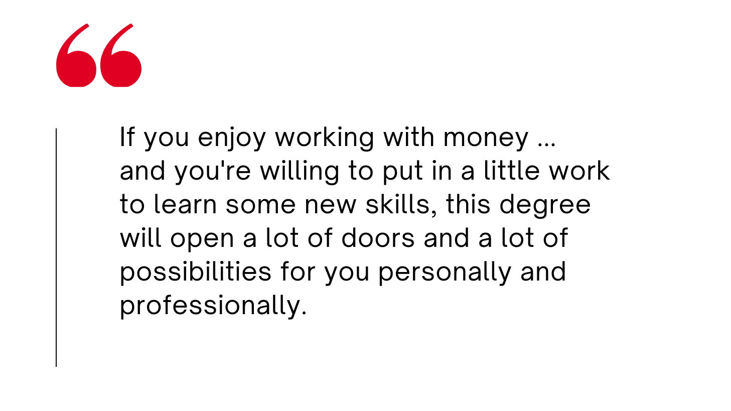 UC Online: Dr. Goedl, it has been wonderful speaking with you. If you could give one final piece of advice to prospective accounting students, what would it be? Dr. Goedl: If you enjoy working with money, and you feel that you are underemployed and you're willing to put in a little work to learn some new skills, this degree will open a lot of doors and a lot of possibilities for you personally and professionally.