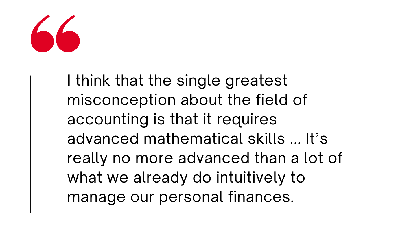 UC Online: Many students might believe that they need to excel at advanced math to be strong accounting students, but you make a clear distinction between calculus and managing money. Who might surprise themselves by being a great accounting student? Dr. Goedl: I think that the single greatest misconception about the field of accounting is that it requires advanced mathematical skills. It simply does not. There are some branches of accounting that are very specialized, like actuaries, but they're rare. The vast majority of accounting uses basic mathematical skills that you can perform on a $1 calculator: addition, subtraction, multiplication, division, and basic fractions. If you think about what accounting really is, it is a system in which we classify financial data. “Here is a transaction that happened. What happened here? How is it classified and how do we put it in the system?” The transaction is defined in terms of numerics, and the number is given to you. You're not calculating it. You're not projecting it. It's a hard number. What we do in accounting is take those numbers and classify them into a system. Is this an asset, is it an expense? Once it's classified, we report on it in a meaningful way so that people understand: Were you profitable or not profitable? How many assets does your company own? How much liability? How many people does your company owe? It's that simple. Think about your personal checking account. When you think about money coming in and out of your checking account, or earning money or spending money, or borrowing money or paying down a debt that you owe, those are numeric transactions as well. Do they require advanced math? No, they don't. That's why I say accounting really doesn't require advanced math. You need to be confident working with numbers, but it's really no more advanced than a lot of what we already do intuitively to manage our personal finances.