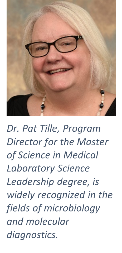 Dr. Pat Tille is the Program Director for the Master of Science in Medical Laboratory Science Leadership program at the