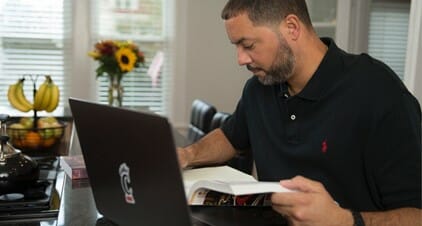 UCO’s master’s programs welcome students from the Cincinnati metro, throughout the US, and from outside the country, too. No matter where they live, students in a program, such as the Master of Science in Medical Laboratory Science Leadership, regularly interact with their online-learning peers and instructors. Students focus on their coursework during the day, in the evening, or on weekends — whatever works with their lives’ demands. Working toward an online degree is just as rigorous as one in a traditional campus setting. “I don’t think everyone realizes this,” Dr. Tille says. “Online learning is much different than taking a correspondence course. While there’s built-in flexibility, you’re not going at your own pace. You have deadlines to meet.”