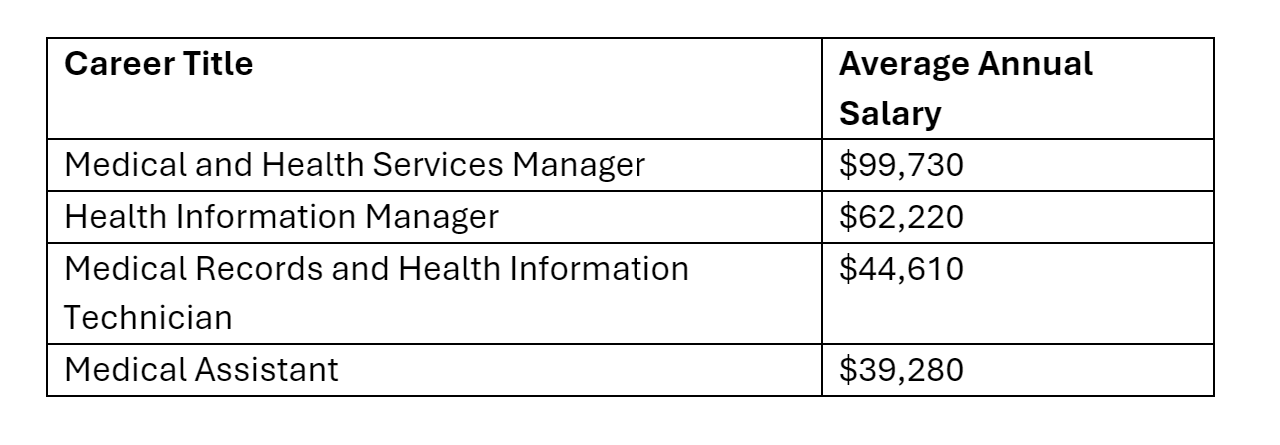 A BSHS opens doors to various medical administration roles, offering competitive compensation. Here's a sample, with salary data from the Bureau of Labor Statistics (May 2023):