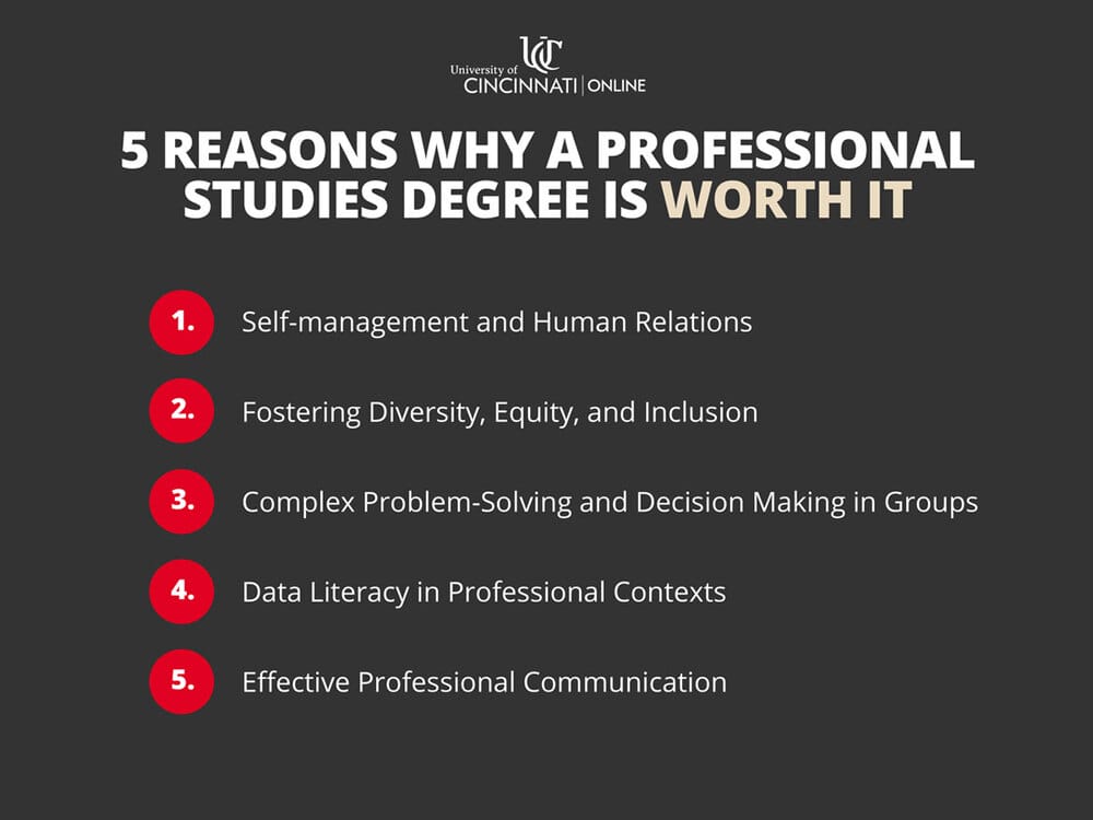 Let’s face it: competition in the job market will not slow down soon. The Bureau of Labor Statistics (BLS) projects a growth of about half a million jobs per year over the next 10 years, and there are plenty of people lined up to fill these positions. According to BLS, degree holders earn about $525 per week extra on average compared to high school grads. But it’s not just about the money – it’s a game-changer in the unemployment arena too. The unemployment rate for degree holders is 3.5% versus 8.3% for those with just a high school diploma. A college degree can significantly influence your career trajectory. You may have already had some college experience and earned some college credits, recognizing the paramount importance of a degree. It’s easy to talk about how significant undergraduate degrees are, but finishing one while balancing the pressures of life outside of school, including jobs and families, can be very difficult. Furthermore, your future matters, and you want to ensure that getting a degree is a worthwhile financial investment that aligns with your long-term goals. The Bachelor of Arts in Professional Studies (BPS) program with the University of Cincinnati Online is a fully online bachelor’s program that is made to be completed in fewer than four years and based entirely on your professional goals. Let’s explore what makes a Bachelor’s in Professional Studies worth your time and money.