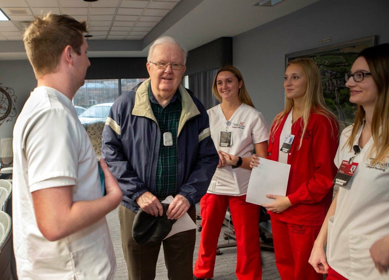 Senior nursing student Tripp Elson says he’s gained some valuable experience while working with the residents at Maple Knoll.